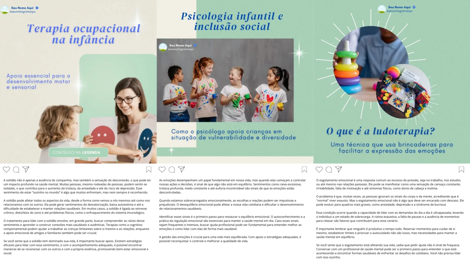 Psicóloga, copie e cole nossos conteúdos prontos com legendas no seu perfil e divulgue seu trabalho de forma profissional!
